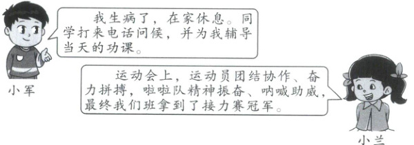 5. 在学校“文明班级”评选活动中,七年级(1)班的小军和小兰同学分享了自己在班级中的美好经历。
