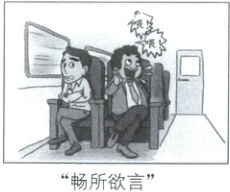 19 C 解析 本题考查行使权利有界限。漫画中男子在公共场合大声打电话,影响到周围人,他在行使自己通信自由的权利时,超越了权利界限,没有考虑到他人感受,缺乏换位思考,C符合题意;“无可厚非”的说法错误,D错误;该男子的行为属于不文明、不道德的行为,并非违法行为,也没有严重危害社会,B错误;A中的“平等待人”不符合漫画主旨,排除。
