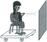 2. 为测量干粉灭火器喷出磷酸盐的速度,有人做了这样的实验:如图,人坐在小车上,手持灭火器,按压阀门让灭火器水平向前持续喷射,测得在 $8.0\ s$ 内,人匀加速移动的距离为 $16.0\ m$。已知人(连同设备)的总质量为 $60\ kg$,灭火器单位时间内喷出磷酸盐的质量恒为 $0.20\ kg$,小车同地面间的动摩擦因数为 $0.02$。忽略该过程中人(连同设备)总质量的变化,可估算出磷酸盐喷出的速率最接近 (