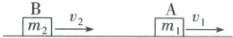 如图所示,在光滑水平桌面上做匀速运动的两个物体A、B,质量分别是$m_{1}$和$m_{2}$,沿同一直线向同一方向运动,速度分别是$v_{1}$和$v_{2}$,$v_{2} > v_{1}$。当B追上A时发生碰撞。碰撞后A、B的速度分别是$v_{1}'$和$v_{2}'$。碰撞过程中A所受B对它的作用力是$F_{1}$,B所受A对它的作用力是$F_{2}$。碰撞时,两物体之间力的作用时间很短,用$\Delta t$表示。