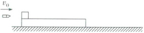 [例$5$] 如图所示,质量为$M$的木块静止于光滑的水平面上,一质量为$m$、速度为$v_0$的子弹水平射入木块且未穿出,设木块对子弹的阻力恒为$F$,求: