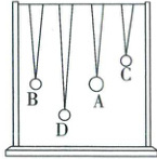 如图所示,在一根张紧的绳子上挂几个单摆,让单摆A摆动起来,对另外的单摆产生驱动力,观察另外几个单摆的摆动情况。