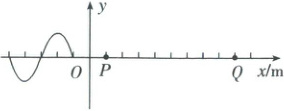 [例 3] (多选)$x = -5\ m$处的振源做振幅为$8\ cm$的简谐运动,形成一列沿$x$轴正方向传播的简谐横波,$t = 0$时刻的波形如图所示,$x$轴上$P$、$Q$两质点的坐标分别为$1\ m$和$9\ m$,$t = 1.3\ s$时质点$Q$第一次处于波谷,下列说法正确的是 (