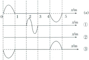 D.当$t = 2 s$时,波形如图②所示;当$t = 4 s$时,波形如图③所示