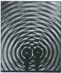 (2)水面上出现一条条相对平静的区域和激烈振动的区域,这两类区域在水面上的位置是稳定不变的。