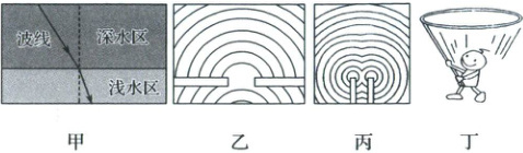)A.甲图,水波由深水区传播至浅水区,波速方向改变,属于波的反射现象
