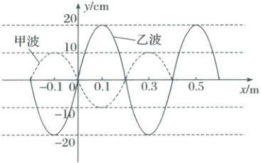 [典例6] 图为甲、乙两列简谐横波在同一绳上传播时某时刻的波形图,甲波向左传播,乙波向右传播。质点$ N $的平衡位置在$ x = 0.1 \, m $处,则下列说法正确的是(