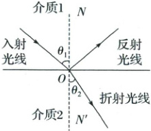 (1) 折射现象:光从第 $1$ 种介质射到该介质与第 $2$ 种介质的