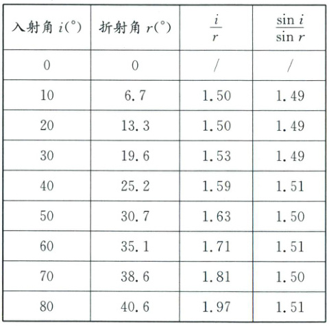 如表所示是在探究光由真空射入某种透明介质发生折射的规律时得到的实验数据,请仔细观察表格数据并思考以下问题。
