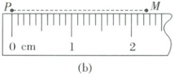③用刻度尺测量$PM$和$OM$的长度$d_1$和$d_2$。$PM$的示数如图(b)所示,$d_1$为