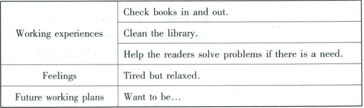 为了体验父母工作的辛苦,暑假你作为志愿者去图书馆工作了一周。请根据以下提示,用英语描述这一周你的工作经历及体验,并展望一下自己未来的工作。