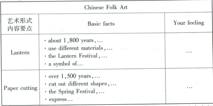 注意:1. 文中必须包含该艺术形式的两项内容要点,可适当发挥(参考词汇仅供选择使用或参考);