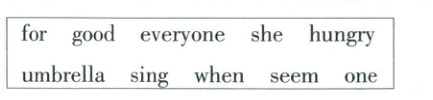 1.first 2.for 3.umbrella 4.well 5.her 6.everyone 7.singing 8.seemed 9.When 10.hungry
