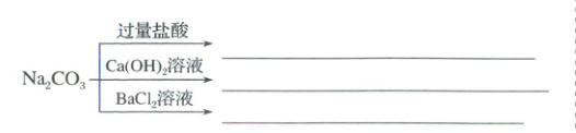 2.$\mathrm{Na_2CO_3 + 2HCl \xlongequal\ 2NaCl + CO_2 \uparrow + H_2O}$ $\mathrm{Na_2CO_3 + Ca(OH)_2 \xlongequal\ CaCO_3 \downarrow + 2NaOH}$ $\mathrm{Na_2CO_3 + BaCl_2 \xlongequal\ BaCO_3 \downarrow + 2NaCl}$ $\mathrm{NaHCO_3 + HCl \xlongequal\ NaCl + CO_2 \uparrow + H_2O}$