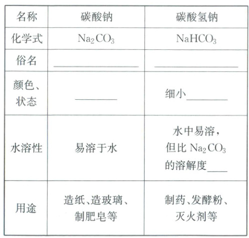 1.纯碱或苏打 小苏打 白色粉末 白色晶体 小