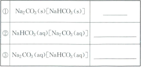 $Na_2CO_3$$\xrightleftharpoons[①固体(加热);②液体(NaOH)]{①CO_2 + H_2O;②少量盐酸}$$NaHCO_3$