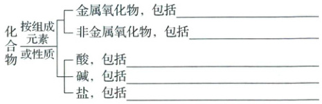 (3) 找出上述物质中的化合物,并按氧化物、酸、碱、盐分类。