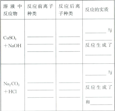 Cu(OH)₂沉淀 Na⁺、CO₃²⁻、H⁺、Cl⁻ Na⁺、Cl⁻ H⁺