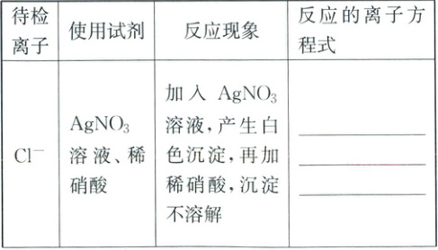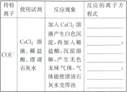 1. $\mathrm{Cl^- + Ag^+ \longrightarrow AgCl \downarrow}$ $\mathrm{Ba^{2+} + SO_4^{2-} \longrightarrow BaSO_4 \downarrow}$ $\mathrm{Ca^{2+} + CO_3^{2-} \longrightarrow CaCO_3 \downarrow}$ $\mathrm{CaCO_3 + 2H^+ \longrightarrow Ca^{2+} + CO_2 \uparrow + H_2O}$ $\mathrm{CO_2 + Ca^{2+} + 2OH^- \longrightarrow CaCO_3 \downarrow + H_2O}$