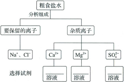 (1)实验目的:除去粗食盐水中的$\mathrm{Ca^{2+}}$、$\mathrm{Mg^{2+}}$、$\mathrm{SO_4^{2-}}$、泥沙等杂质。