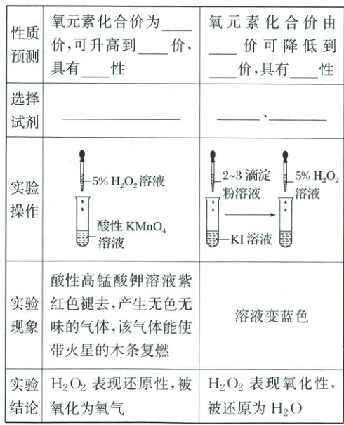 )4.$H_2O_2$中$H$元素价态为$+1$价,因此预测$H_2O_2$和还原性物质反应时,其还原产物为$H_2$。 (