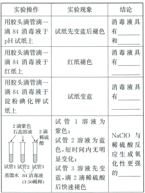 2. 探究84消毒液有效成分的性质