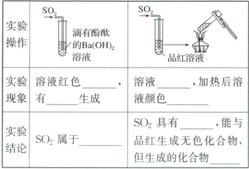 3. 将$SO_{2}$通人品红溶液中,溶液褪色,加热后无变化。 (