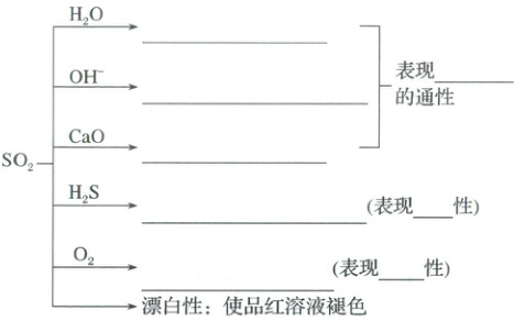 (2)$\mathrm{SO_2 + H_2O⇌H_2SO_3}$ $\mathrm{SO_2 + 2OH^-=SO_3^{2-} + H_2O}$ $\mathrm{SO_2 + CaO=CaSO_3}$ 酸性氧