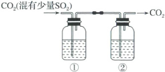 3. ${CO_{2}}$气体中含有少量${SO_{2}}$,欲得到纯净、干燥的${CO_{2}}$,通过如图所示的洗气瓶,①②两瓶中所装的试剂应该是(