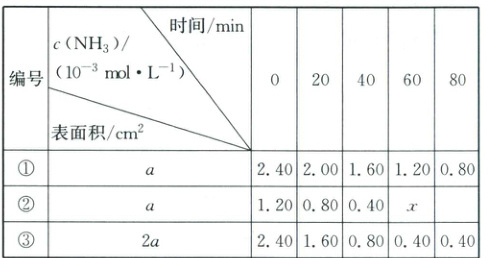 6.C 由表格中数据可知,实验①,$0\sim20\ min$,平均反应速率$v( N_2)=v( NH_3)/2=(2.40 - 2.00)×10^{-3}\ mol· L^{-1}/(20\ min×2)=1.00×10^{-5}\ mol· L^{-1}· min^{-1}$,A项正确;催化剂表面积的大小只影响反应速率,不影响平衡,实验③中氨气初始浓度与实验①中一样,实验③达到平衡时氨气浓度为$4.00×10^{-4}\ mol· L^{-1}$,则实验①达到平衡时氨气浓度也为$4.00×10^{-4}\ mol· L^{-1}$,而恒温恒容条件下,实验②$60\ min$平衡时$x\neq0.40$,B项正确;对比实验①、②可知,增加氨气的浓度,反应速率不变,C项错误;对比实验①、③可知,催化剂表面积增大,反应速率增大,D项正确。
