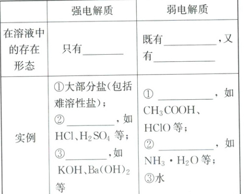 2.完全 部分电离 阴、阳离子 阴、阳离子 电解质分子 强酸 强碱 弱酸 弱碱