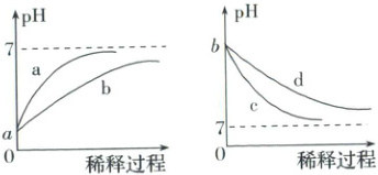 (填上图中的字母代号,下同),表示强碱(或相对强的碱)稀释过程的是c