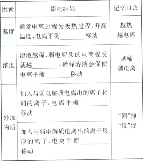 (2)外因:外界条件对弱电解质的电离平衡的影响