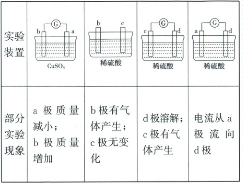 2. 有a、b、c、d四个金属电极,有关的实验装置及部分实验现象如下: