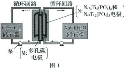 4.A 放电时负极反应:$\mathrm{Na}_{3}\mathrm{Ti}_{2}(\mathrm{PO}_{4})_{3}-2\mathrm{e}^{-}\xlongequal{}\mathrm{NaTi}_{2}(\mathrm{PO}_{4})_{3}+2\mathrm{Na}^{+}$,正极反应:$\mathrm{Cl}_{2}+2\mathrm{e}^{-}\xlongequal{}2\mathrm{Cl}^{-}$,正极消耗氯气,放电时,阴离子移向负极,充电时阳极反应:$2\mathrm{Cl}^{-}-2\mathrm{e}^{-}\xlongequal{}\mathrm{Cl}_{2}$。根据分析可知,A 正确;放电时,阴离子移向负极,$\mathrm{Cl}^{-}$透过多孔碳电极向$\mathrm{NaCl}$中迁移,故 B 错误;放电时每转移$1\ \mathrm{mol}$电子,依据$\mathrm{Cl}_{2}\sim2\mathrm{e}^{-}$得,理论上$\mathrm{CCl}_{4}$释放$0.5\ \mathrm{mol}\ \mathrm{Cl}_{2}$,故 C 错误;充电过程中,阳极发生反应:$2\mathrm{Cl}^{-}-2\mathrm{e}^{-}\xlongequal{}\mathrm{Cl}_{2}$,消耗氯离子,$\mathrm{NaCl}$溶液浓度减小,故 D 错误。