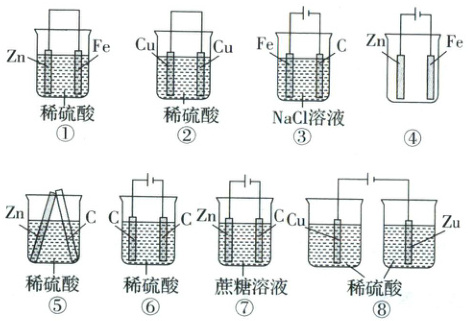 (4)$Cu - 2e^{-} \longrightarrow Cu^{2+}$ $Cu - 2e^{-} \longrightarrow Cu^{2+}$ $2H^{+} + 2e^{-} \longrightarrow H_{2} \uparrow$ $Cu^{2+} + 2e^{-} \longrightarrow Cu$ $2H^{+} + Cu\stackrel{通电}{ \longrightarrow }H_{2} \uparrow + Cu^{2+}$