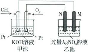 (1)甲池为甲烷碱性燃料电池,氧气为氧化剂,通入$\mathrm{O}_2$的一极为正极。