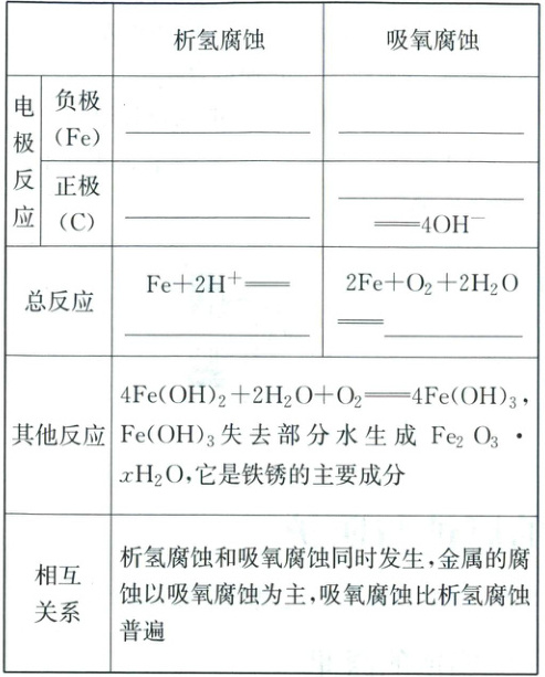 [特别提醒] (1)金属活动顺序表中,只有氢前金属才既有析氢腐蚀又有吸氧腐蚀;氢后金属只有吸氧腐蚀,无析氢腐蚀。