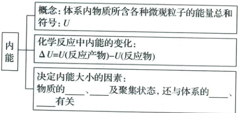 )2. 根据能量守恒定律,化学反应中内能变化等于反应热和功的加和,即$\Delta U=Q + W$。 (