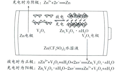 放电时正极:xZn²⁺ + V₂O₅ + nH₂O + 2xe⁻ = ZnₓV₂O₅·nH₂O