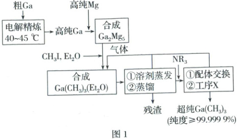 9.(2023·湖南卷,节选)超纯$Ga(CH_3)_3$是制备第三代半导体的支撑源材料之一。近年来,我国科技工作者开发了超纯纯化、超纯分析和超纯灌装一系列高新技术,在研制超纯$Ga(CH_3)_3$方面取得了显著成果。工业上以粗镓为原料,制备超纯$Ga(CH_3)_3$的工艺流程如图1:
