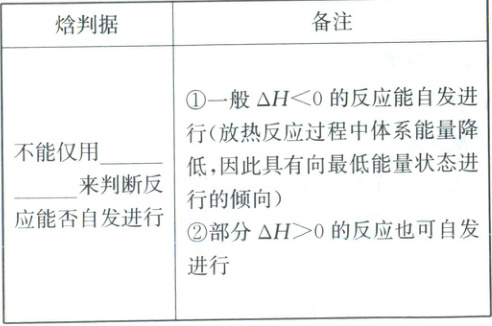 ③ 有一些反应焓变不大的吸热反应,在室温条件下不能自发进行,在高温条件下其焓变并没有显著减小,但反应却能自发进行,如碳酸钙的分解反应: