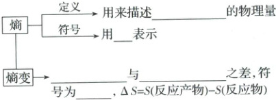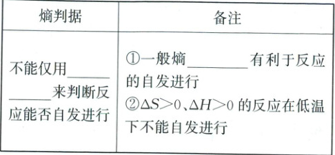 ③ 对于气体参与的反应,若为气体分子数增大的反应,则$\Delta S$$0$,属于熵的反应,若为气体分子数减小的反应,则$\Delta S$$0$,属于熵的反应。