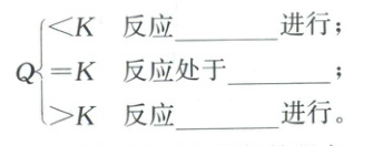 化学平衡常数是表明的一个特征值,因此,可用$Q$与$K$的大小关系判断可逆反应是否达到化学平衡状态及反应进行的方向,具体判断如下: