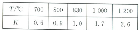 (2)当$c_{平}(CO_{2}) · c_{平}(H_{2}) = c_{平}(CO) · c_{平}(H_{2}O)$时,即$K = 1$,对应表中温度为$830^{\circ}C$。