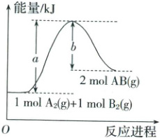 1. 已知化学反应$A_2(g)+B_2(g)\longrightarrow2AB(g)$的能量变化如图所示,判断下列说法正确的是 (