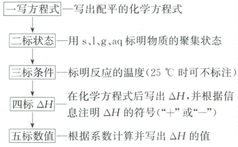 分别表示固体、液体、气体和溶液);②$\Delta H$的单位是$J· mol^{-1}$或$kJ· mol^{-1}$;