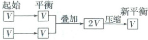 新平衡状态可认为是由两个原平衡状态简单的叠加并压缩而成,相当于增大压强。