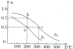 温度相同,则 a、b 两点平衡常数相等,$\frac{0.5}{V_\mathrm{a}} × \left(\frac{1}{V_\mathrm{a}}\right)^2 = \frac{0.7}{V_\mathrm{b}} × \left(\frac{0.6}{V_\mathrm{b}}\right)^2$,$V_\mathrm{a} \neq V_\mathrm{b}$,容器体积不相同,故 C 错误;a、c 两点平衡体系中,$\mathrm{CO}$ 的转化率都是 $50\%$,平衡时,$\mathrm{CO}$ 的物质的量为 $0.5\ \mathrm{mol}$、$\mathrm{H}_2$ 的物质的量为 $1\ \mathrm{mol}$、$\mathrm{CH}_3\mathrm{OH}$ 的物质的量为 $0.5\ \mathrm{mol}$,则甲醇的体积分数都是 $25\%$,故 D 正确。