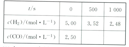 。(2)在$1000\ s$内用$CO$表示的化学反应速率是